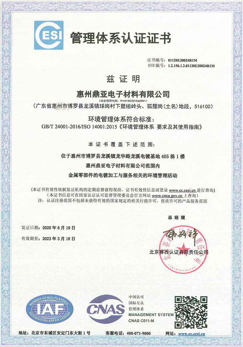 惠州IATF 16949:2016认证证书